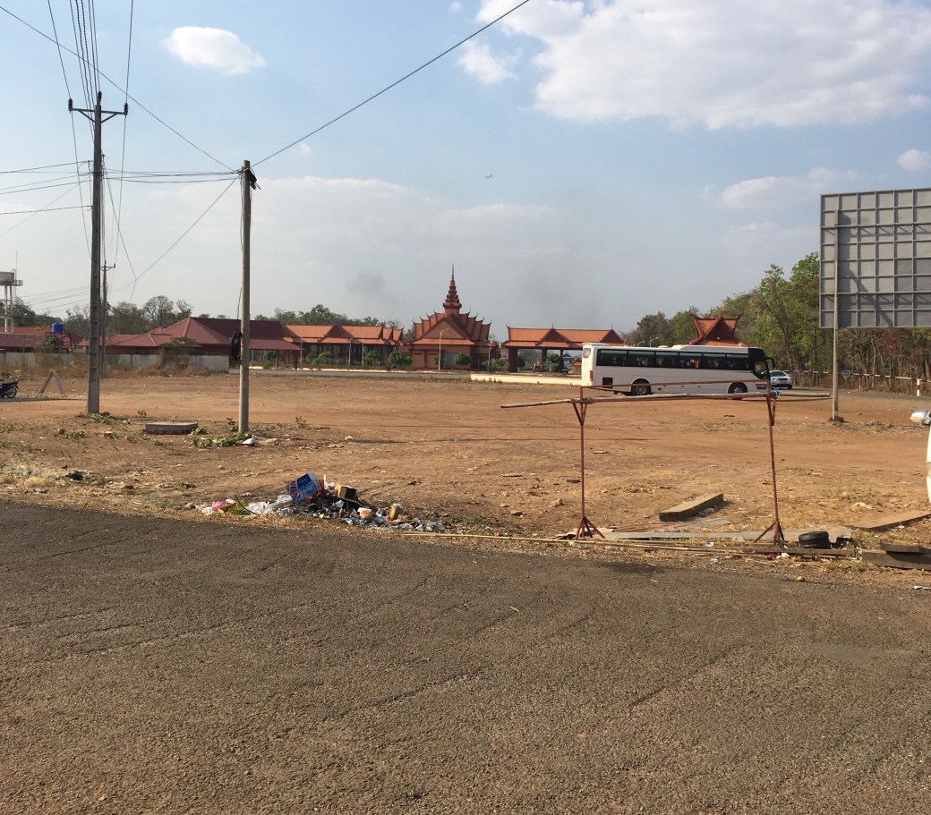 “Yes, you go, bye bye!” Our bus driver/international currency con-man had places to be. Traversing the remaining hundred yards to the passport office with our packs gave us the opportunity to survey the border crossing. On the Cambodian side were the aforementioned ticket booths and the government-plain passport control office. On the Laotian side were more toll booths, another passport office, and an impressive covered area for trucks and vans to pay their tolls and be processed. The rooflines rose to the sky in classical Asian architectural style. The whole area was flat, having been cleared of trees and brush, and roads crisscrossed between the countries to imbue the scene with a decidedly dystopian vibe.